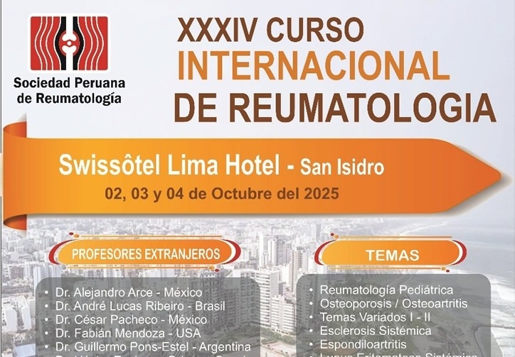 XXIII CONGRESO PERUANO DE REUMATOLOGÍA "DR. LUIS JAVIER JARA QUEZADA" - 09 AL 12 DE OCTUBRE 2024 - CUSCO, PERU